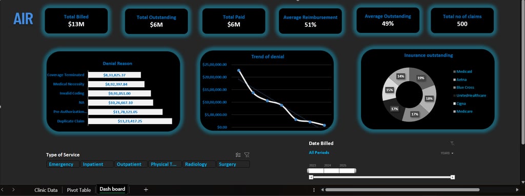 The financial data shows the reality of healthcare billing: large outstanding balances, frequent denials, and slow payments. These are not just numbers—they represent lost time, stress, and missed opportunities for growth.